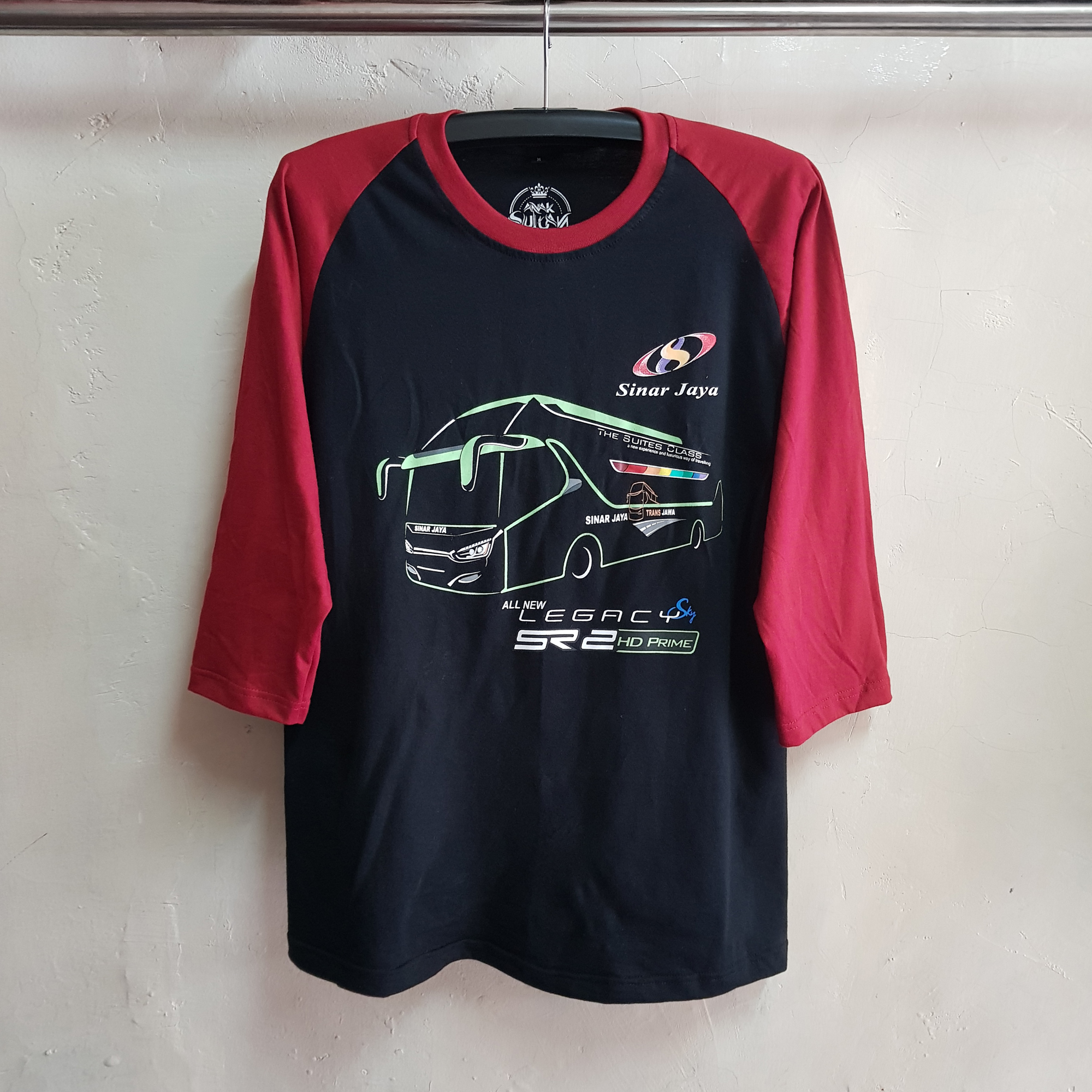Seragam Kaos (T-Shirt) Oblong Cotton, Kaos Glow in The Dark Hitam-Maroon, Kaos Raglan 3/4.
